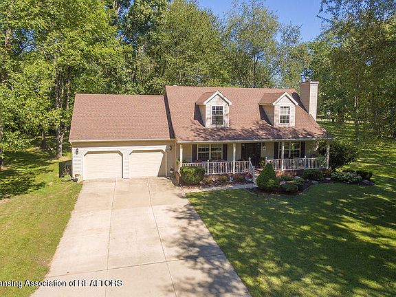 A little piece of heaven awaits you with this absolutely gorgeous property on 10.9 acres set way back off the paved road and down a concrete driveway There is way more into this house and property than the asking price As you turn in you will be amazed at the manicured property with a gorgeous tree grove, plenty of parking for cars, trucks, trailers or RV's The well-maintained cape-cod style home has a contemporary flair to the Great room with its vaulted ceiling. The covered front porch is perfect for relaxing outdoors and there is also a 3-season room for viewing the back part of the property while avoiding the bugs Enter into the main living area and find the Great room with the soaring ceiling, ceiling fan and the fireplace with a Mauer insert which can heat a 2100 sq ft house