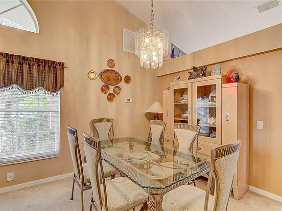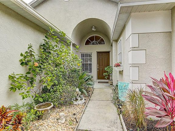 This beautiful home nestled in the well established Chapel Pines neighborhood in Wesley chapel and located on a cul-de-sac, greats you with mature landscaping and an open front porch to enjoy and connect with your neighbors. As you enter your new home you are welcomed by a large great room with decorative pot-shelves and formal dining area. To the right are two spacious secondary bedrooms that share a 2nd bathroom with a tiled tub-shower combination. To the left, the spacious kitchen features a breakfast bar, plentiful counter space and upgraded wood cabinets, eat-In Breakfast area along with a screen door for air flow through the attached 2 car garage! The family room, located off the kitchen and overlooking the fenced back yard with two gates, has beautiful laminate flooring and sliding doors to the covered patio and newly re-screened (2018). Have sweet dreams in your master suite retreat with high ceilings and decorative wainscoting. The large walk-in closet features built in cabinets while the Master bathroom features double sink vanity, fully tiled walk-in shower and separate garden tub to soak away your stressful day. along with decorative chair rail and wainscoting. High ceilings throughout the main living areas and bedrooms allow plenty of natural light to flow through your home! With no CDD and a low HOA this is the perfect home for you and your family. Don't look any further and make this great house your new dream home. Schedule your private showing today!
