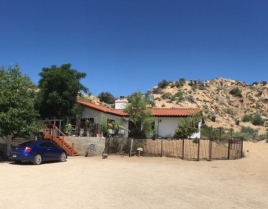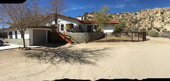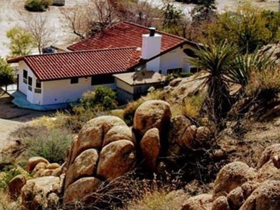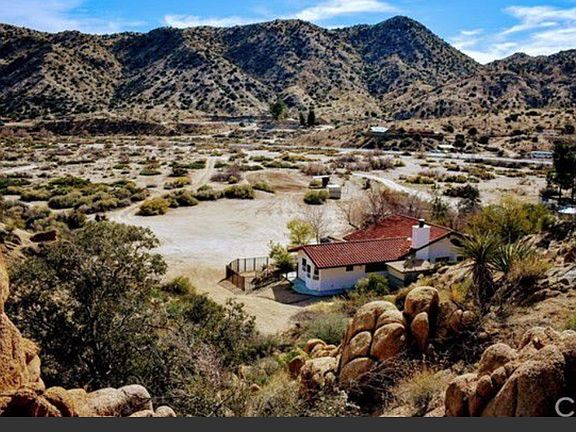 Nestled in own cove of boulders and sculptures rock formations, natural desert, mature trees surrounding home. Zen feeling!!! 2 miles before famous Pappy and Harriets, and 2 miles from town, yet feels like hundreds of miles away!! The Drive up Pioneertown rd is beautifully amazing with the sawtooth mountains capturing your attention. House has some original touches and update touches throughout. Kitchen has original knotty pine cabinets. We added a dishwasher as it was a must for all our entertaining!! Master suite built in 2004, capturing what this hone is all about. The boulders and rock formations captured right when you wake up from all bedrooms, and even the master bathroom has amazing views from their windows Enjoy unique large shower along with deep, extra large jacuzzi tub. Horse people. Still have corrals, wash rack, hitching post under big shade tree, hay barn, tack room, out door lights. Has own water Well!!! A home is very rare to come up for sale in this Canyon, just before entering the winding road to Pappy and Harriets.