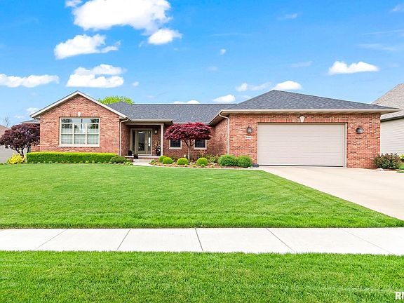 Meticulously maintained 3700 square foot, 4 bedroom, 3 1/2 bath custom-built ranch on the 14th hole in the popular Piper Glen community. Expect to be impressed with everything in this home including the gorgeous view down the 14th fairway. Enter into a formal living room with a bank of windows with panoramic views of the course. You will love the great room with vaulted ceilings and gas log fireplace with stacked stone to the ceiling that is open to the formal dining space and the gorgeous kitchen with a large cambria quartz island and breakfast bar. The large maintenance free deck is perfect for outdoor entertaining. The primary suite is oversized with a sitting area and the 2 guest bedrooms are joined by a Jack and Jill bath. The lower level is finished with a large 4th bedroom with brick floor and wainscoting, a full bath and a family room. Great storage throughout. 2.5 car garage has a large bump out which is perfect for a workshop, storage or a golf cart. Enjoy the community pool, playground, basketball courts and pickleball courts. Piper Glen is an 18 hole public championship golf course. Chatham schools with CWLP and Ameren for utilities. Updates include: all paint 19', roof 23', water heater 14', kitchen 16', furnace 18', AC 22', plumbing fixtures 24', garage door 13', landscape lighting 24'.