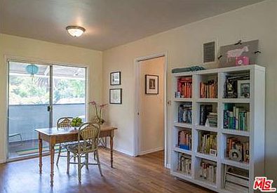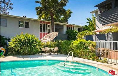 Mint condition Mid-Century pied-~~-terre in the Hollywood Hills. This quiet top floor one bedroom one bathroom unit offers a spacious living and dining room with beautiful hardwood floors throughout and direct access to a private balcony and treetop views. A cozy tiled kitchen with wood cabinetry, vintage stove and newer flooring. The large one bedroom provides loads of closet space and an Art Deco bathroom with glass tiled tub/shower. Enjoy the tropical resort-style grounds with large heated pool surrounded by trees, gardens and greenery creating your own oasis in the city. Gated, covered parking and additional storage. Close to the heart of Hollywood. This is a must see!