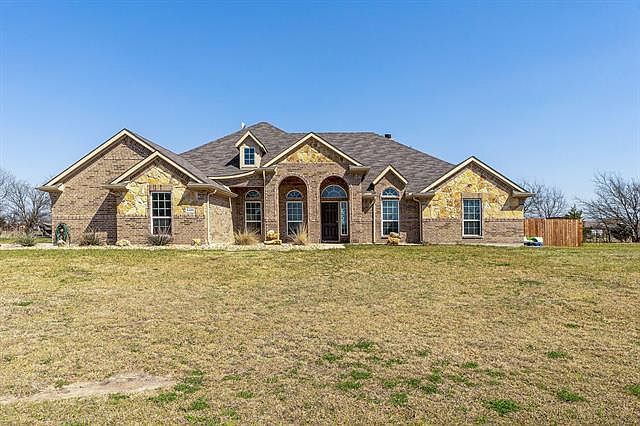Come see this immaculate home that is sitting on over an acre lot with full access to a stocked pond. You will love the open floor plan that features 4 or 5 bedrooms and 2 and half bathrooms. The front room just off the entry is perfect for an office, fitness room or can even be a 5th bedroom. The additional living room is great for a game room or huge dining room. The spacious kitchen opens to the living room. The master bedroom is on the opposite side of the house from the rest of the bedrooms and features a huge sitting area. The master bathroom has separate vanities with plenty of counter space. The additional 3 bedrooms are all great sizes. There is absolutely no carpet in this home! Outside you will love relaxing on your covered patio and enjoying the swimming pool that comes with a slide. In addition to a 3 car garage this property has a 20x30 workshop with electric and is plumbed for a bathroom. You do not want to miss out on this one!