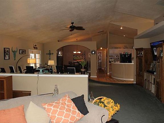 The tree-lined drive leads to this Stunning Single level home on 120 acres! Home has stucco exterior and tile roof, Massive Great Room and Master Bedroom Suite! Land features a private FAA Approved airstrip and hanger! Land is fully fenced and borders BLM to the South and subdivisions to the North making it a premier piece for future development. Ready for animals.