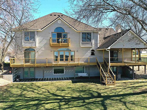 Watching the sunset over a lake is a beautiful experience. Watching the sunset over Sherwood Lake from your covered back deck is even better. You might even spot a bald eagle soaring over the lake. While this home has stunning views, it does not have actual lake frontage. It is eligible for a Class B Sherwood Lake Club membership which would allow use of the lake and Sherwood Lake Club boat dock. A whole house inspection was conducted in 2023 and repairs and upgrades were made. In 2023 the interior was painted a neutral gray to allow you to easily add your personal touches. The main floor master suite has an awesome ensuite with walk-in closet, soaking tub and shower. The 4 upstairs bedrooms share 2 full baths and a large, open family room. There is a 6th bedroom and a full bath in the walk-out basement which also has rec and exercise rooms. Many of the rooms have remote controlled custom window treatments. Please note that work is being done on the dam to the east of the property, and there is a temporary easement to allow access for construction equipment. A very small sliver of the east side of the existing lot is being deeded to Sherwood Lake Club to facilitate this work and any future repairs. To help fund this work, there may be an assessment in the neighborhood of $200 - $1,100 for Class B members. The amount depends upon how much, if any, of grant money is awarded by FEMA.
