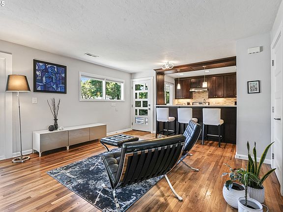 Charming One-Level Home Just Minutes from Multnomah Village! This beautifully maintained ranch-style home blends comfort and functionality—all on one level. Hardwood floors flow throughout the expansive open-concept layout, seamlessly connecting the living room, dining area, and kitchen—ideal for both entertaining and everyday living. French doors off the living room open to a private patio, creating effortless indoor-outdoor flow. Work from home in style with a dedicated office featuring French doors and abundant natural light. The kitchen features stainless steel appliances, an expansive eat bar, and opens to a dining area complete with a wine fridge and rich wood accents. A generous laundry room provides extra storage and utility. The private primary suite offers direct access to a serene backyard deck through sliding glass doors, while the fully fenced yard includes both open and covered outdoor spaces. Relax under the glow of string lights on a separate covered deck—perfect for evening gatherings or peaceful mornings. Additional features include oversized bedrooms, a spacious garage, and a thoughtful, functional floor plan. Nestled in a quiet neighborhood with top-rated schools and just minutes from beloved Multnomah Village, this home offers an exceptional lifestyle in one of Portland’s most desirable locations. [Home Energy Score = 3. HES Report at https://rpt.greenbuildingregistry.com/hes/OR10186614]