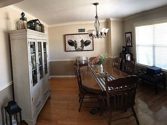 Located in Riley Farm this home has an open floor plan. The living room is spacious with hardwood floors and gas log fireplace. The kitchen has a walk-in pantry corian counter tops with plenty of cabinet storage. The master bedroom is down stairs, full master bath with shower, jacuzzi tub and walk in closet. Two upstair bedrooms with a full bath perfect for young kids or privacy for your weekend guest. With a beautiful covered back patio it’s perfect for barbecuing, entertaining, relaxing or watching the kids play. There is a three car garage with extra storage cabinets and a workspace for your tools. Over the garage is extra attic floor space for storage.
