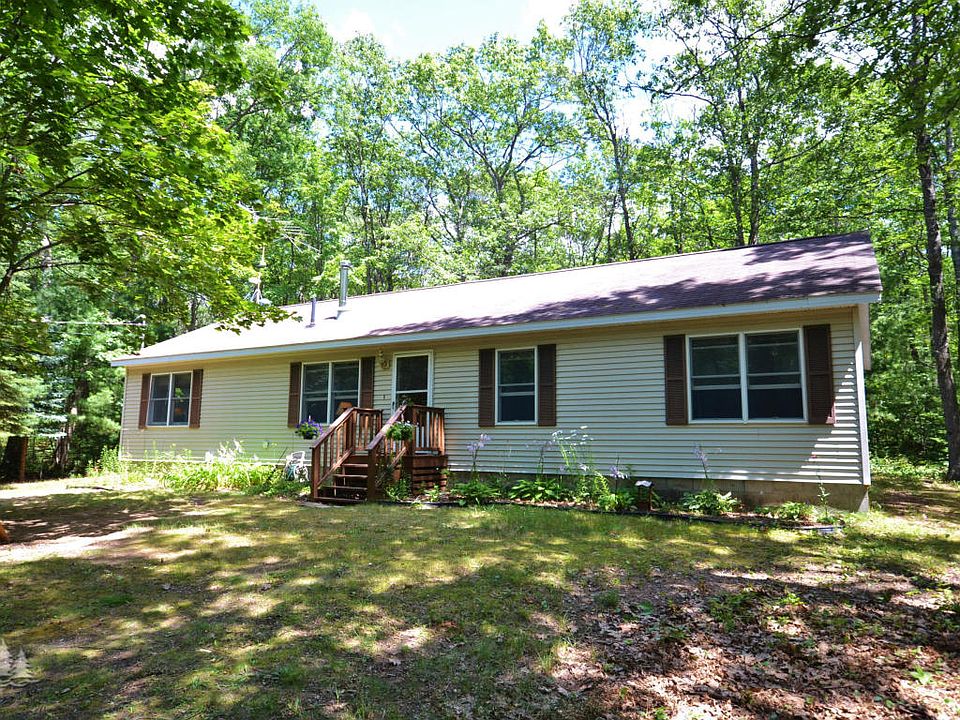 Spacious 3 bedroom, 2 bath ranch style home with shared-private access to Little Bear Lake. Home features a family room with wood stove, master suite, large kitchen and breakfast nook, living room and more. Also, a partial basement, two decks and a 24x24 garage all on 5 nicely wooded lots.