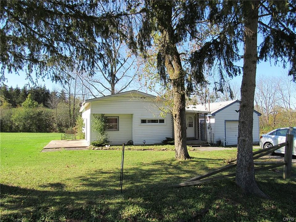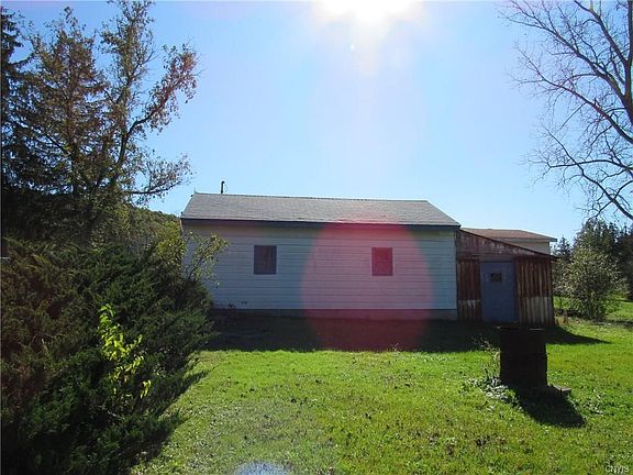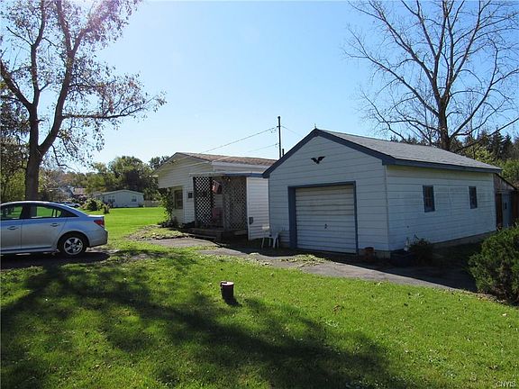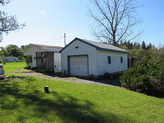 Ranch home with eat in kitchen, living room, dining room or den area, laundry in bathroom, two bedrooms, utility room and additional room that could be used as a bedroom. New energy efficient windows completed in 2007. New roof on home in 2014. Quiet dead end country road. Land is level. Detached one car garage. Heat is kerosene.