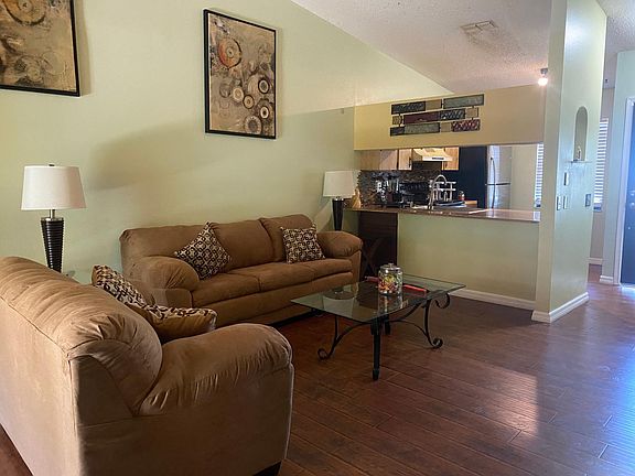 Freshly painted condo with new appliances and hardwood floor. Walking distance from major retailers, restaurants and Gulfview Square mall. Fully furnished, His and hers granite tops in bathroom. 1 master bedroom and 1 regular size bedroom plus sunroom with washer and dryer. Plenty of closet room, pantry and backyard area. 1 yr lease. First last and security deposit due at sign in. Property fully furnished, water, trash and sewer included. Tenant responsible for lights.