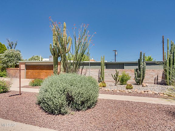 This 1955 home has been redesigned for an Arizona lifestyle with extensive outdoor living areas. Impeccably maintained burnt adobe home with, arguably, the best curb appeal in the neighborhood. Enter the home through your private courtyard complete with custom flagstone patio and a beautiful security door. Thoughtful and extensive upgrades have been made to the home including dual thermal pane windows, 200 amp electrical panel, an insulated 2 car garage offering epoxy flooring, utility sink and attached cabinets to keep everything organized. Rest easy at night knowing that the water supply line to the house and the interior water pipes have been replaced, new water heater installed in 2023, sewer line from the exterior of the home to the street has been lined and the HVAC is 5 years young Kitchen has been updated to include custom cabinetry, Brazilian soapstone countertops, stainless steel appliances and a beautiful slate tile backsplash. Living room offers Soaring wooden rafter ceiling detail and a remote operated gas fireplace. The professionally enclosed Arizona room seamlessly marries your indoor/outdoor living spaces and welcomes you to your dream backyard oasis with mountain views. There you will find fully surrounded stucco finished block walls that provide ample privacy, 6 mature fruit trees and herb garden, a gardening shed with convenient outdoor sink, lush grass, covered porch for entertaining the night away and an outdoor fireplace to cozy up to on chilly nights. Irrigation has been installed to keep your favorite plants thriving. Imagine hosting the next pool party in the salt water pool, you can grab some shade under the covered cabana and rinse off in the custom outdoor shower. Passive solar heat for the pool will extend the swimming season and a pump house protects the pool equipment. Separate workshop space is available along with a bonus building - perfect for working out or even a hot yoga session. Home is located within walking distance of Palo Verde Park offering recreational facilities, pool, park, playground, walking trails, bike racks, baseball and softball fields, basketball courts, batting cages, ramada and grills, dog park and so much more. This is a must see property - you will not be disappointed!