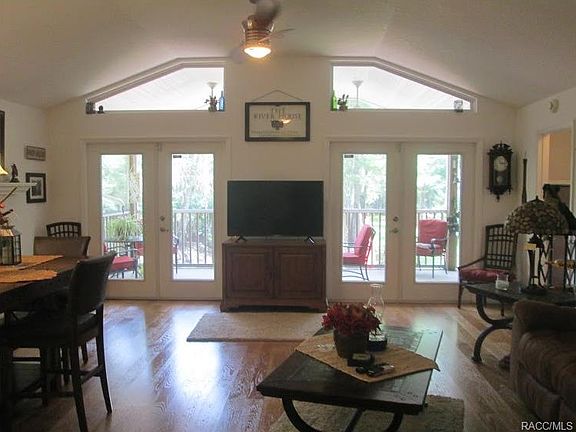 This waterfront property offers beautiful views of the Withlacoochee River. The updated 3 bedroom 2 bath home has a bright, open floor plan with french doors that lead out to the screened patio from both the living room and the Master Bedroom. Features inlcude a fireplace, counter rotating ceiling fans, security system and a home deionizer/water softner system. Sitting on just over an acre, this property has a storage shed, a covered parking area for your boat, a detached garage that has been converted into a workshop and office/ studio. This park-like setting includes a dock on the river, 2 docks on the canal and a boat ramp.