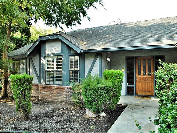 Attractive 4-bedroom home with great curb appeal in the well-kept neighborhood of Craycroft Village in NW Fresno. One enters into a spacious family room with cathedral ceiling with 2 skylights, fireplace with wood carved mantle and adjacent window seat and shelves. Plantation shutters adorn most windows, and the home features good storage and built-ins throughout. The bright kitchen includes built-in appliances, garden window, an eating area w/bay window, a center island, and access to the back patio. There is an extra large formal dining room plus a small isolated bedroom and an office on the south side of the home with the other 3 bedrooms located at the north end. The inside utility room with cabinets gives access to the finished 2-car garage. The master bedroom has a sliding door to the charming backyard with koi pond, swimming pool, grassy area and even a playhouse and shed.