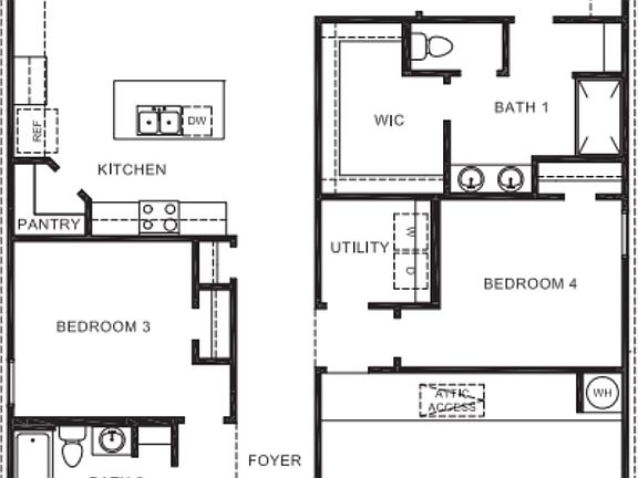 - Walk-in Shower, Breakfast Bar, Kit Counter-Quartz, Pantry, Sheet Rock, Primary Bedroom/Main Lv, All Bedrooms Down, 2 Bedrooms Same Level