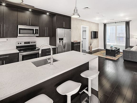 Stylish Contemporary New Design meets Inspiring NYC Skyline views in this 2 Bedroom 2 Baths-Condo with Low Monthlies! This Dazzling, Top Floor-South East Corner condo is replete with Incredible Tax Abatement Savings & coveted Deeded garage Parking-in a Prime, vibrant Location. The Ideal open floor-plan offers 975+- sq. ft. of Luxury living space; 9ft.+ soaring ceilings & Sun filled oversized picture windows w/ Iconic NYC Skyline Views. The Open Chef's Kitchen features a fabulous crafted waterfall Quartz Island Bistro Bar & counters, stainless appliances & abundant cross grain, sleek, contemporary espresso Cabinetry. The split Bedroom layout offers supreme privacy. The Master Bedroom features an en suite Luxury Bath w/ stall shower, floating vanity & walk-in-closet. The Secondary Bedroom faces East with Captivating Inspiring NYC Skyline views. There are Artfully adorned accent walls thru out with impressive imported stone, Wall paper & stylish subway tile. Off the Entrance a 2nd full Bathroom designed w/ Aquatic Rainfall shower head & imported Tiles. Pristine espresso flooring thru out, full size Washer/Dryer; Central HVAC; Smart Home features-round off the Floor-plan. Move Right in! Discover 6401 Park Ave., a Newer Boutique Luxury 5-Story Condo Building. HOA includes: 1 Deeded Garage Parking space; Exercise room. Tax Abatement Benefit until 2024. Pets are welcome. This Ideal Location on Park Ave. offers hassle free commuter options to NYC only 4 Miles to NYC Port Auth. steps away. A short stroll to New eateries, boutiques, shopping & so much more. Don't Miss out!