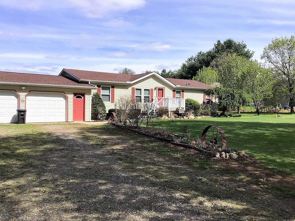 GREAT COUNTRY LOCATION!This home sits on 4.6 acre parcel that has beautiful yard that includes an apple orchard,pear trees cherry trees, 2 grape arbors and large garden area.Split open floor plan with a master suite that has walk in closet.The lower level has a huge area that could be a family room, recreational area or exercise room and it has a full functional kitchen, full bath and bedroom.The garage is 2.5 car that has heating and cooling system, their is a whole house generator and a few sheds for additional storage. Large pasture area for a few horses or cows.