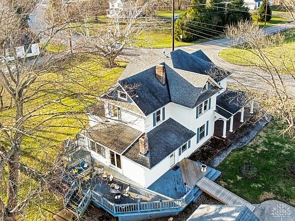 Beautiful Farmhouse offers So Much Charm! Kitchen is the heart of this home & boasts fireplace, much counter seating, dining area, large windows & doors to deck looking over horse pasture, creek & woods. Natures playground! Family Rm w/ original pocket doors to dining rm, Parlor/living Rm built-in window seat, bookshelves,cabinetry,4 bedrooms, 2 full baths, staircases in kitchen & foyer, original front door, wrap-around porch, Bank Barn with 6 horse stalls, workshop, garage has 325sq ft bonus room upstairs.