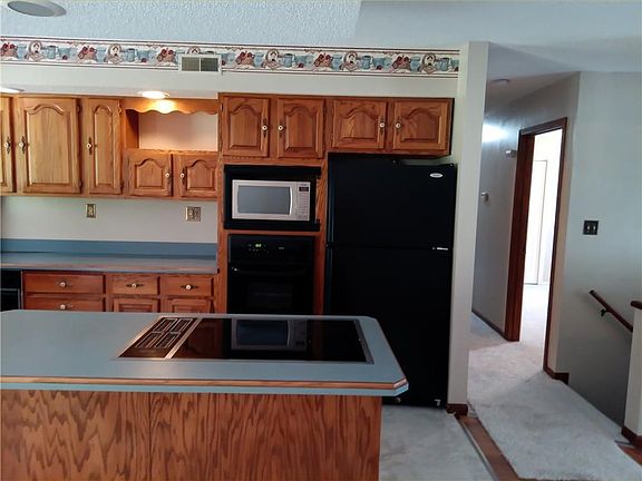 • Ceiling Fan(s), Kitchen Island, Stained Cabinets