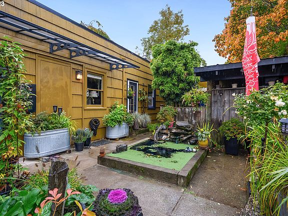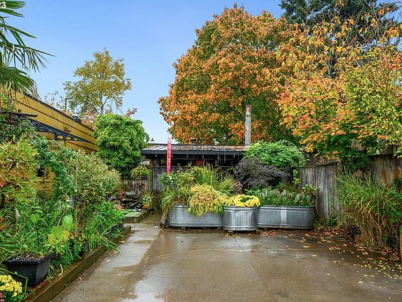 This Mt. Scott-Arleta home is truly unique! At one time, a general store, at another, a candy shoppe. Now a personal oasis offering a living experience like no other. Enter the home into an open, but cozy living room and dining room area. A gas powered stove adds an element of comfort and charm, keeping the space toasty in the colder months. Natural light pours in through the numerous windows, bringing in the lush greenery of the amazing yard. The sunken kitchen offers an efficient layout for cooking, plus tons of storage in the attached pantry/laundry room! The previous market space makes for an incredibly roomy primary suite with flexible arrangement options. The second bedroom is the perfect office or guest bedroom and leads out to an open air garden deck where countless warm summer nights are bound to be enjoyed. With a brand new sewer line, new water line, new gas line, newer plumbing, and a newer roof, all you need to worry about is moving in and enjoying your own little oasis in SE! The detached 2 car garage is the ideal maker space, offering plenty of room for all of your toys and hobbies. The yard is a mystical and peaceful getaway with its luscious gardens, babbling fountains, and multiple gathering areas. An ideal location just a few blocks away from the shops, restaurants, and bars on Foster!