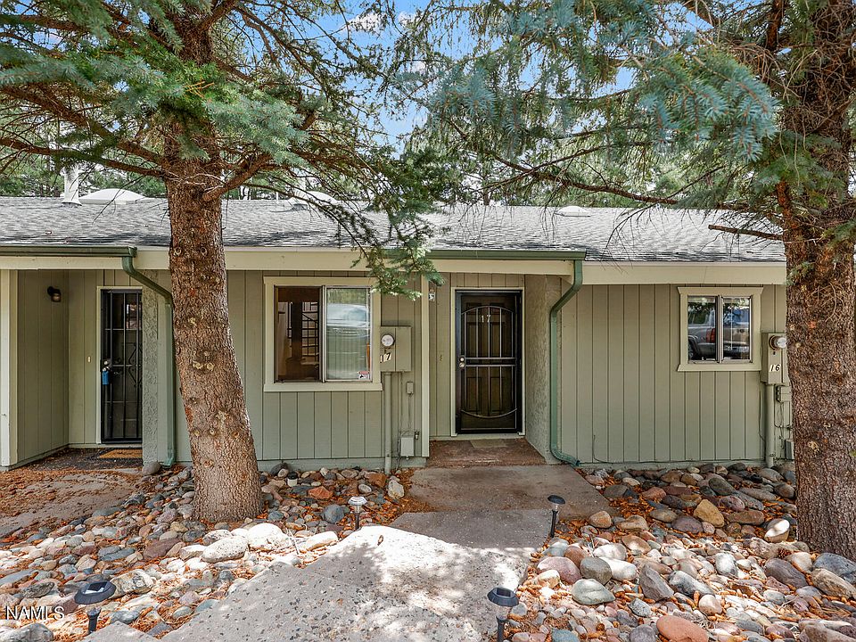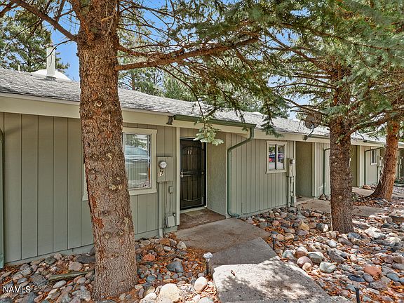 Perfect, affordable and ready for the first time buyer, investor, or 2nd home owner looking for a low maintenance lock and leave option. The primary bedroom is on the main level with it's own bathroom and access to the fenced yard. The open loft area accessed by spiral staircase has a second full bathroom so can easily be used as a second bedroom. The high vaulted ceilings give the home an open feeling and lots of light. All with easy access to NAU, forest trails, shopping, restaurants and local bus stop