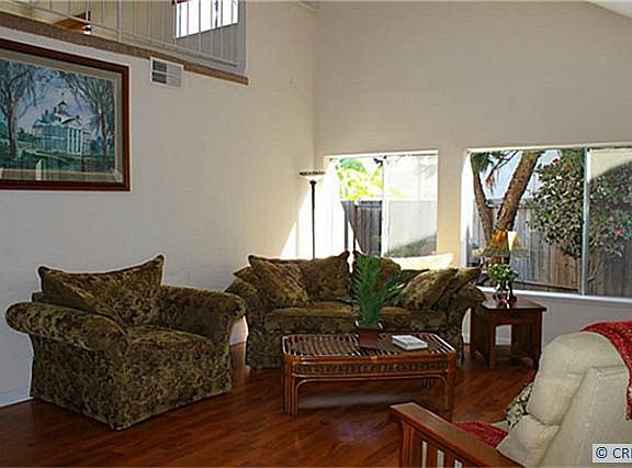 Standard Sale. Fantastic interior location on small cul-de-sac. Popular Spacemaster 1 floorplan with 5 bedrooms, 3 bathrooms, living room with fireplace and high cathedral ceiling, family room and huge bonus room. Three bedrooms downstairs including master suite. Very open floorplan with walls of windows surrounding living room and family room/kitchen area. Bonus room has high vaulted ceiling and overlookings living room below. Newer carpeting and laminate wood flooring, central air conditioning, forced air heating, direct access to garage and secluded front patio area. Oversized rear and side yards have lots of producing fruit trees including Asia Persimmon. Close to 4 neighborhood parks, public transportation, 22, 405 and 605 freeways. Great neighborhood and much sought after schools. Elementary School is Acclaimed Patton Elementary School.