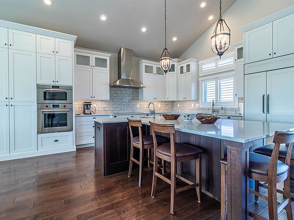 Welcome home! This beautiful custom remodeled home is located in the highly desired Nine Mile Falls School District. Walk in to a Grand welcoming entrance that shows like a Model home featuring a chefs dream kitchen. Kitchen has custom cabinets with built in Subzero refrigerator, Wolf induction cooktop, and M series oven and convection steam oven. Dishwasher is so quite a light comes on to remind you it's on. Counter-tops are Quartz material; Caesarstone Bianco. Upstairs flooring features Eagle Lodge Maple Engineered handscraped Hardwood. Quality plantation shutters throughout house for shade when you need it. Gorgeous master bedroom w/ bathroom featuring a walk-in double headed tiled shower and access to the back deck (new Azek Decking) entrance to enjoy the beautiful sunsets. Walk-out daylight basement features new carpet and tile that looks like wood. New 28x32 insulated garage has hardy board siding, and a metal roof. Plenty of fruit trees including elderberry. Ask agent about additional 20-40 acres