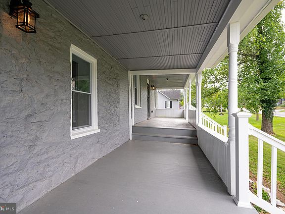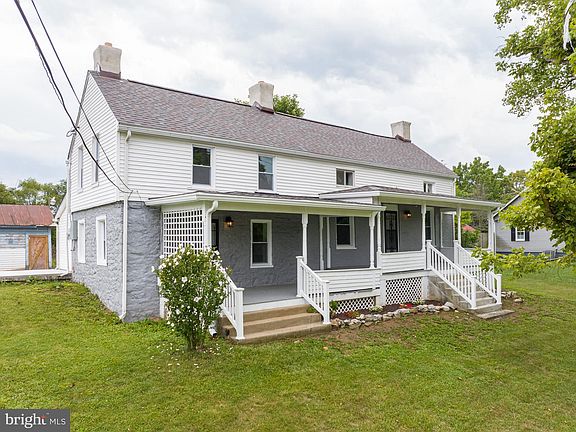 This lovely farmhouse on 0.58 acres has been completed redone! It features updates and upgrades throughout. It includes, new plumbing, new wiring, new HVAC, new heat pump, and a brand-new roof! This house comes with no worries! A couple of stairs walk-up to the large, double porch. This gives you plenty of space to enjoy those country views. Inside you have a large mudroom with LVP floors. This would be a great space for a small sitting room or hall tree to keep the family organized. The large kitchen features the same LVP floors and Mahoghany cabinets. Counters are granite and accented by the lovely backsplash. All appliances are new and classic, stainless steel. The space features a back staircase and is topped off by a wood burning fireplace. A couple of stairs walk you up to the large dining room. Here we have redone hardwood floors and a ceiling fan. Beyond that is your spacious living room with refinished hardwood floors. Here you have access to the front porch and your main staircase. The laundry room features tile floors, hook ups and linen closet. Tile carries into the luxury full bath. Here you have plenty of storage between the double bowl vanity and linen closet. The 5 ft tub/shower combo features tile surround. Upstairs you have two generously sized bedrooms with carpet. The back staircase provides a private entrance to the primary bedroom. It features redone hardwood floors, ceiling fan and a large closet for storage. Outside of the home you have a patio and concrete pad. Beyond that is a large gravel driveway for ample parking. There are two storage sheds that convey. The cellar has been cleaned up and houses the new hot water tank. There are hookups for an ADU accessory building in the rear of the home. Your lot is lush with grass and mature trees all around the property. Perfect for the dogs to run and enjoy. This home has so much to offer - call before it's gone!