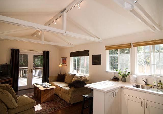 Remodeled 450sf cottage in Nicasio available for rent. Private, gated entrance welcomes you to this quaint one-person unit on a sunny stretch of Nicasio Creek located 30 minutes from beaches and Southern Marin and just 45 minutes to S.F. Setting combines the incredible natural beauty of West Marin living, with a large deck that overlooks Nicasio Creek and a seasonal waterfall and swimming hole, and modern features like ultra-high-speed Internet and keyless front door. The cottage has an efficient layout, including a full kitchen with bar seating, living room that opens out onto the wrapping deck, bathroom with shower only and a bedroom with closet. Original distressed hardwood floors are paired with completely redone interior walls and new energy-efficient dual-pane windows. Filled with light the unit has views of the forest and creek and is on the other side of a large paddock from the property's main house (over 100m away). All appliances and heaters are electric and the unit has its own water well and septic. The unit is available month-to-month for $1950 per month, plus $3200 deposit. PG&E, trash and Internet are not included. No smoking or pets are permitted but there are many animals on site. Rent includes water filtration maintenance, parking, and a remote for the property's electronic gate. There is space for a washer and dryer in an adjacent outbuilding. We are looking for one tenant who is quiet, easy-going, professional, and employed outside of their home. We require good credit, excellent rental references, and income/employment verification. The homeowner lives on the premises in the main house.