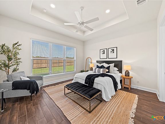 Discover 6402 Clayton Court, a modern retreat set on a rare half-acre cul-de-sac lot in Temple’s sought-after Legacy Ranch. Inside, an open layout filled with natural light showcases a chef’s kitchen with a full Whirlpool appliance suite, LG stainless steel refrigerator with craft ice, and Miami Vienna quartz countertops framed by charcoal blue shaker cabinetry.