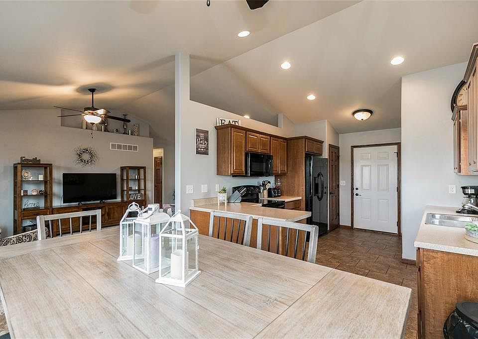 Light, open & airy! This ranch home showcases vaulted ceilings, fresh neutral paint & lots of natural light. Tiled entry, spacious family room & professionally cleaned carpet. Kitchen features maple cabinets, crown molding & pantry closet. All appliances stay, including brand new washer & dryer, 1st floor laundry. Large primary suite with full bath attached and walk-in closet. Lower level is completely finished, housing a large rec room currently set up as a workout space & a movie viewing area. Additional bedroom in lower level & bonus room as well as another full bath. Brand new Nest thermostat & sump pump. 1 year old water softener, owned. All solid core 6 panel interior doors throughout. Built with 2x6 construction & green principles. Relax outside on the freshly stained deck & enjoy the level & spacious lot. Pond behind property maintained by city of Marion. North of pond is future site of a dog park. No mthly fees!