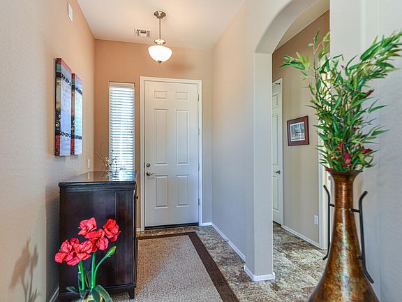 One owner, immaculate home, rarely lived in, ready for new owners. Home is located on a premium view lot. There are maple cabinets throughout, 20'' tile flooring, carpet in bedrooms, with custom blinds throughout. Refrigerator, washer and dryer stay. Master bedroom has a very spacious walk-in closet and shower. Living room has a corner gas fireplace with blower. The lush backyard boast beautiful and mature landscape, faux grass, brick work and and extra long covered patio. Front and back landscape is on a drip system. Garage is a spacious 2.5 with plenty of storage. Granville amenities include: two clubhouses, swimming pools, spa, fitness centers, tennis courts, pickle ball court, many walking trails, dog park and secure RV storage.