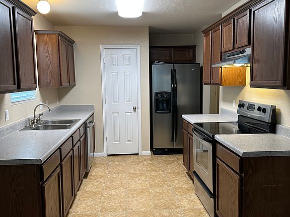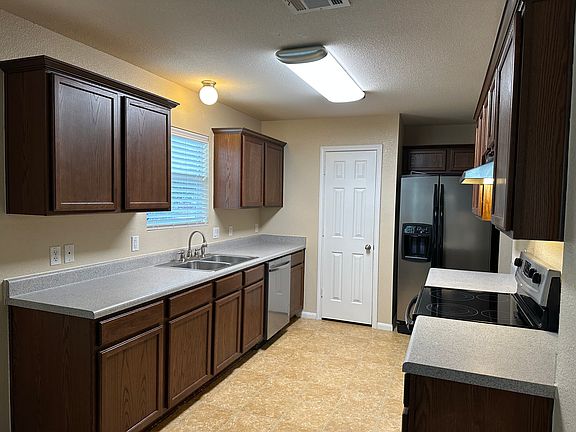 Well kept Centex Omega floor plan. Upgrades included: radiant barrier decking; front door; fireplace; Pop-up in Master Bed Room; fresh painted walls; security system with additional keypad; rocker light switches; programmable thermostat; 8 deep sink; upgrade kitchen faucet; 42 garden tub with separate shower; 2nd sink in master bath; cabinet above refrigerator; SS/BLK Whirlpool appliances; new carpet installed; insulated garage walls and ceiling; garage door opener. You will find this very clean home a cozy refuge. French doors have been added to exit on to the covered patio. The master is large and offers a pop-up ceiling. The kitchen has an abundance of cabinets, SS appliances, and refrigerator. The yard is also well maintained with landscaping, sprinkler system and storage shed. 12 month lease No roomates No dangerous dog breed No smoking allowed