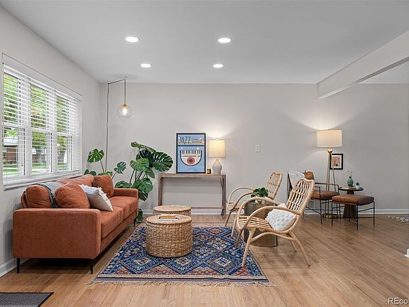 Welcome to this beautifully maintained Hutchinson brick ranch, perfectly situated near Olde Town Arvada. From the moment you step inside, beautiful hardwood floors invite you into a bright, open-concept layout ideal for both everyday living and entertaining. The spacious living and dining areas flow seamlessly into a tastefully updated kitchen featuring warm cherry-stained beech cabinets, granite countertops, a subway and glass tile backsplash, and stainless steel appliances. Just off the kitchen, a cozy sunroom—heated for year-round comfort—offers the perfect space to relax and unwind. The primary suite includes a walk-in closet and an updated ¾ bath complete with a solid-surface corner shower, heated floors, and modern finishes. A second bedroom and full bathroom round out the main level. Downstairs, enjoy a large family room and two versatile bonus rooms—perfect for a bedroom, guest rooms, exercise room, home office, or play area. A generous laundry room with built-in cabinetry and a utility sink adds convenience and storage. Outside, the beautifully landscaped yard includes a full sprinkler system, a patio, mature trees and shrubs. Additional updates include a radon system, newer double-pane windows throughout (including the basement), interior and exterior paint, basement carpet, a 2018 roof, and gutter leaf guards. Located in a highly sought-after neighborhood close to Apex tennis and pool, shops, dining, trails, parks, and schools, this lovingly cared-for home is a rare find. Don’t miss the opportunity to make it yours!