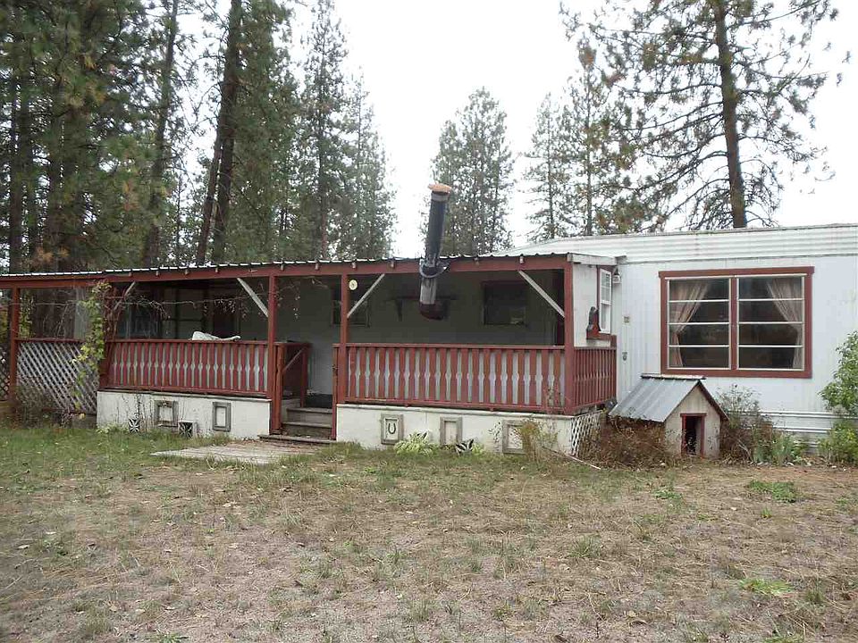 50K Cash only sold as-is. Seller will not do any repairs! Oversized corner lot with 1968 2 bed 1 1/2 bath single wide. 1/2 bath is in master suite. Remove it, replace it, or rent it. Property only 9.9 miles (approx 15 min drive to North State Park Dr. for public boat launch to Long Lake or 10.8 miles (approx 16 min drive to Lake Spokane campground. -