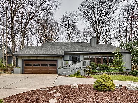 QUALITY CONTEMPORARY, Open floor plan with lots of LIGHT and windows. Wood floors and vaulted ceiling in great room with gas three sided fireplace. Incredible kitchen with recessed lights, LARGE ISLAND, unique pendant lights, abundant cabinetry and glass front cabs, granite, gas down draft oven/range. Upstairs has loft perfect for yoga, HUGE MASTER BEDROOM and RENOVATED BATH. Walk out storage as well as pull down. Doors from SUNROOM, kitchen, and den to LARGE DECK, private, fenced yard, gravel paths.