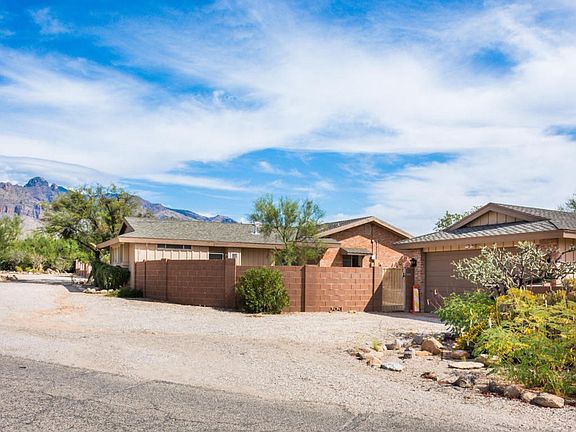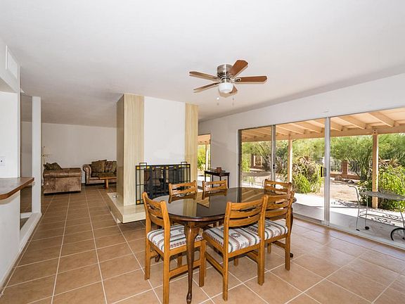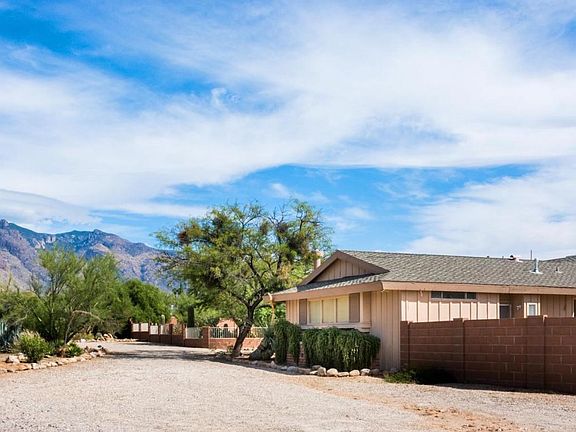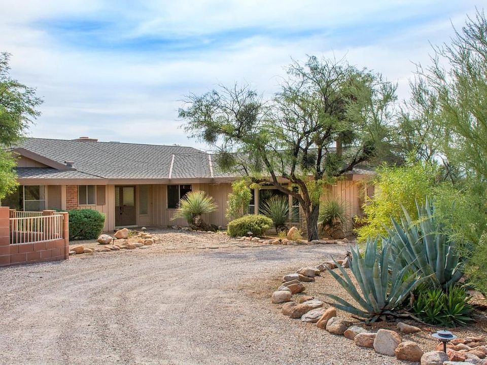 Charming Tucson ranch home with contemporary feel featuring dramatic mid-century fireplace dividing the formal living and dining rooms with a wall of windows leading out to a full length patio with lovely mountain views. The kitchen is light and bright with it's own eat-in breakfast area plus a bonus room that could be a great office or study. You will love the huge family room with it's own free standing fireplace and the generous master with ensuite bath. Very spacious, low care backyard with plenty of room for a pool and an awesome detached 2-car garage with wonderful workshop or storage room.