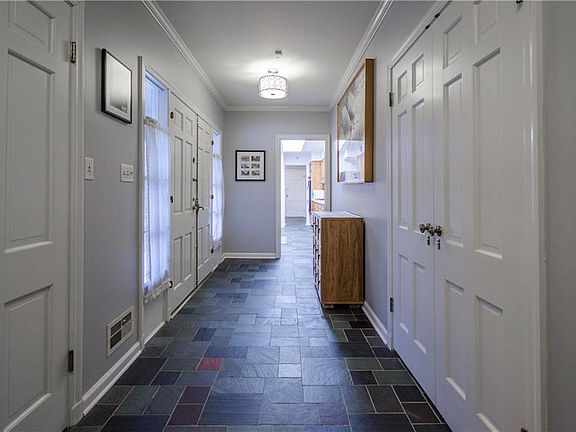Sweet, swanky and available now! This Mid-Century "Modest" ranch has delightful details from the period, along with expansive public and private spaces. Enormous GrtRm with fireplace connected to the Kit, and a light-filled DinRm leads to the perfect LivRm with its own fireplace. New slate entry runs through the kitchen space. Terrific mudroom area leads to a huge garage with loads of extra space. 2 outbuildings for even more storage/workshop space. Unfinished Basement has tremendous potential.