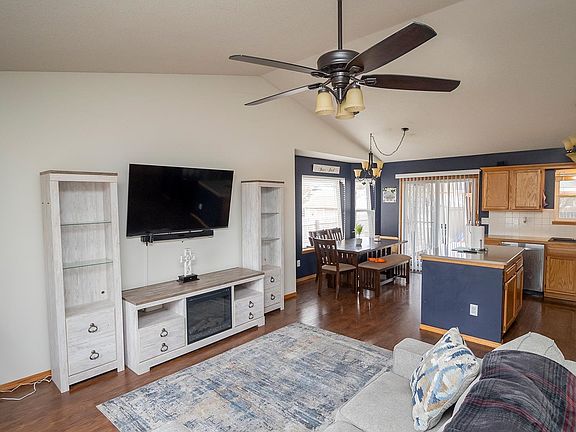 This home has an FHA assumable loan at a fixed interest rate of 3.125% APR! Updated 5-bedroom, 3-bathroom ranch located in Park City! This home has an open floor plan that you will absolutely love. The living room offers vaulted ceilings, wood laminate flooring and opens up to the kitchen. The kitchen includes a large island, ample wood cabinetry, and all appliances transfer. The dining room has a sliding door that leads to the back yard. Down the hallway, you'll find the wonderful primary bedroom with laminate flooring, vaulted ceilings, and en-suite with double vanities, a beautiful walk-in shower, and a spacious walk-in closet. Two more bedrooms, a full bathroom, and the separate laundry room complete the main level. The fully-finished basement is the perfect hangout space with the large family room with a full theatre system including sound system, and a dry bar. Two more bedrooms (one just recently finished) and a full bathroom finish out the basement. The fully-fenced backyard is spacious and includes a covered back patio, a beautiful 25x18 pergola with electricity and firepit, and a storage shed! Per seller, the roof was installed in August of 2020!!
