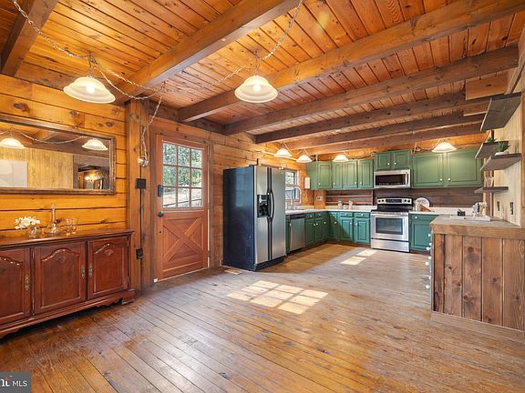 Escape to your own private log cabin retreat – just minutes from DC. Are you looking for a home that feels like you're living in the middle of the woods but are only one exit outside of DC? This log cabin is a unique blend of seclusion and accessibility all in one! This stunning 4-bedroom, 2-full bathroom log cabin sits on a sprawling 0.93-acre lot, offering 3,113 sq. ft. of rustic charm with modern convenience. Nestled on a dead end road, this home is ideal for those who crave space and privacy without sacrificing urban convenience. Step inside to discover warm wood interiors, vaulted ceilings with exposed wood beams and a cozy pellet fireplace, creating an inviting atmosphere perfect for relaxation. The spacious primary suite, along with three additional bedrooms, ensures plenty of room for family or guests. The spacious kitchen with stainless steel cabinets offers rustic cabin charm and plenty of counter space. Out the glass doors in the rear of the home you will find an open deck with views of the beautifully wooded yard and blooming trees. The side yard offers a fenced in dog run and access to the side of the wrap around porch. The expansive wooded lot offers endless possibilities—whether you dream of a serene garden, outdoor entertaining, or subdividing the lot and building another property! The lower level offers the fourth bedroom with adjoining bathroom, a separate living space or rec room with high ceilings, and a kitchenette - great for a separate guest space, a separate income producing rental space, or a large exercise room. An additional side entrance from the basement level offers easy access from the driveway. Multiple options of public transportation with a bus stop on the intersecting street and just 1.5 miles to the Landover Metro station and 2.4 miles to the Cheverly Metro station on the Orange Line. Down the street from shopping, restaurants and access to the Baltimore Washington Parkway.