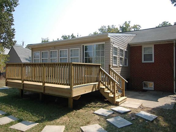 This completely renovated all brick rambler has nearly all new interior outstanding features and gorgeous all-season sunroom and large deck. This outstanding rental value is beautifully finished with a full mother-in-law suite. This home is located in a great residential neighborhood. It has 4 bedrooms, 3 full baths, two full kitchens, a large sunroom, living room, dining room, family room many closets and more. It has a driveway for up to 4 cars. This great home is conveniently located only a short drive away is the new National Harbor Place on the Potomac and Andrews AFB in the other direction. It also is not far from many other government and private businesses. Walk down the street and around the corner to the Skyline Elementary School. This home features two complete kitchens with electric ranges, frost free refrigerators, one with a microwave, garbage disposals, and custom oak cabinets and counter tops. One kitchen is in an in-law suite. This suite has a separate outside entrance. The master bedroom has a very large walk-in closet and its super master bathroom has a soaker tub, separate shower and double bowl vanity. There is a laundry with washer and dryer and a hook for another laundry. There is a second full bath on the main floor and a third full bath in the in-law suite. The living room has a brick fireplace. The large back yard is completely fenced. The home has recessed lighting and ceiling fans hardwood floors and wall-to-wall carpeting. and . The home is prewired for cable TV, internet, and telephone. Please come and see the outstanding features of this home. Call Lowan Goldring at show contact info to schedule a showing and to answer any questions you might have. Sorry no pets. Also visit our web site at www.merrimartproperties.com to see other Merrimart properties.