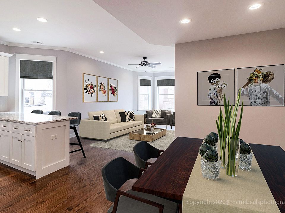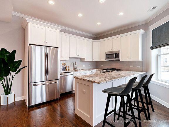 Gorgeous high end new construction 2 bedroom/2 bath condo in booming East Woodlawn within walking distance to the University of Chicago, Hyde Park and Lakefront. Gorgeous greystone spacious unit that boasts quality construction and craftsmanship. Two large bedrooms with lots of closet space, large living area with designated dining area, and a granite kitchen with top of the line stainless steel appliances. Walnut floors throughout, whirlpool bathrooms, central air and high efficiency furnace. Back deck is private and there is one designated off street parking spot. Owner pays for water, sewer and garbage. Resident is responsible for their own gas and electric. Prospective tenant has 650 or higher credit, no evictions and meets the income requirement.