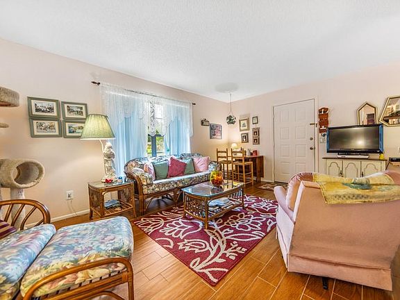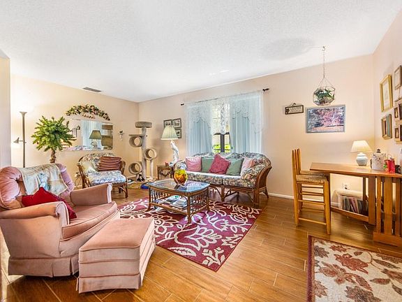 Come see this free standing villa with a one car garage in beautiful 55+ maintenance free community Cambridge Village. This 2bedroom, 2 bath home has an open and easy to navigate floorpan. Featuring multiple sitting rooms ands a large enclosed Florida room. With lots of natural light and views of your back yard, an ideal setting for easy relaxing days. The kitchen has a enclosed dining area. The community is pet friendly and features a community pool and clubhouse. With a location close to shops, restaurants, entertainment, medical offices and the local beaches.