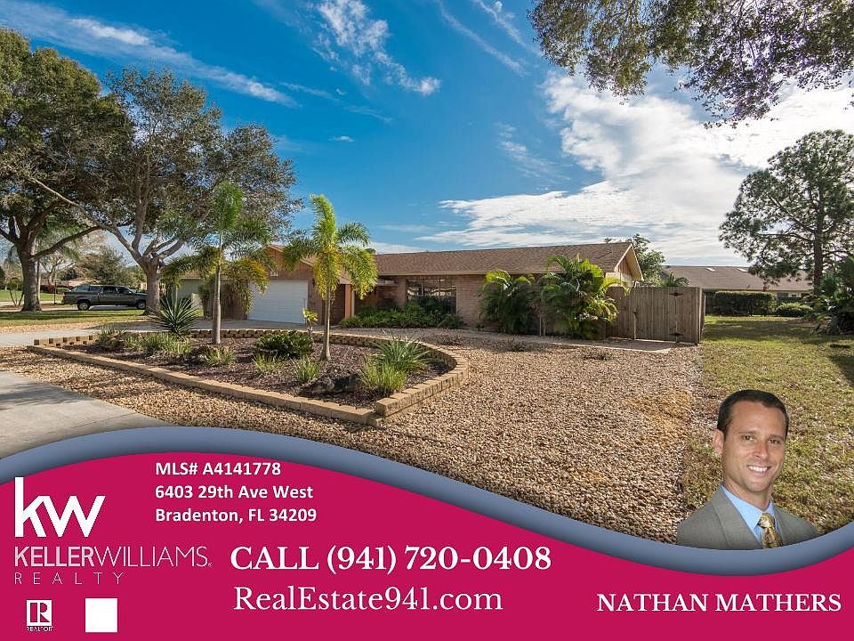 NEW ROOF-NEW WINDOWS/DOORS offers more value and sound proofing, plus low utility bills, on this pefectly sized comfortable family home. This home is perfect for entertaining and big family functions! The entry opens up to the traditional living room/dining room L with the front window offering natural light and a beautiful tropical view. The kitchen with lots of counter space and eat-in breakfast bar is conveniently located in the middle of the house. Most of your time will be spent in the adjacent 20x13 large family room. The fireplace will add novelty for your candle lit evenings or ambiance for your winter nights. There are 3 sets of slider doors that open up to the huge lanai so you can relax and enjoy your outdoor life in a screened in environment. The 5 person hot tub offers a relaxing and soothing retreat for your aching body or a water feature to the party! Spend the day outside in the large back yard for outdoor games of play or let the dogs run free! The master bedroom with walk-in closet is privately located in this split plan design and has its sliders out to the hot tub! The 2nd and 3rd bedrooms are ample in size for all the needs of your family and guests. Both of these bedrooms have walk-in closets and are convenient to the hall bath. The hall bath has a door to the outside. It could be a convenient pool bath. The large fenced in yard has plenty of room for a pool! There are NO community DEED RESTRICTIONS or HOA fees! The side of the home is perfect for a potting table or better yet, open up the fencing for your boat or jet ski storage! This favoured west Bradenton location is convenient to all your needs including Blake Hospital, groceries, shopping, fast food or fine dining, fitness center and the YMCA. The schools are close by and favoured by the community including IMG Academy! It is a short distance to watch the sunset at the azure waters of the GULF OF MEXICO and put your toes in the tiki hut restaurants of ANNA MARIA ISLAND! The arts/entertainment districts of Sarasota or Bradenton's Riverwalk and visits to the world renown Ringling Museum or St. Armands circle offer world class activities! Another benefit is the handy access to I-75 for fun trips to Disney or Miami's night life! SRQ airport is nearby and Tampa airport is an easy drive.