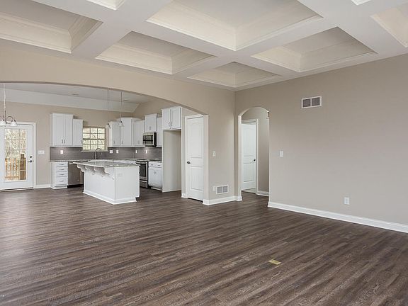 A New All Brick Walk Out Ranch backing up to a Protected WoodLand Area in The Farm at Lovers Lane. When you enter this home you are Amazed by the Large Open Family Room with Coffer Ceilings, an Open to theInformal Dining Area and Kitchen with Custom Cabinetry, Granite Counter Tops, Large Center Island,Under Cabinet Lighting, Stainless Steel Appliances and Hardwood Flooring Throughout the First Floor, Except for the Bedrooms and Baths. A Very Large Master Bedroom with a Triple Trey Vaulted Ceiling, Master Bathroom has Separate His and Her Granite Top Vanities and Large Walk-In All Tile Shower with Custom Touches. There are two addition Bedrooms on this Split Bedroom Style Ranch with an Additional all Tile Bathroom. Full Lover Level Walkout with a Rough in Bathroom and a