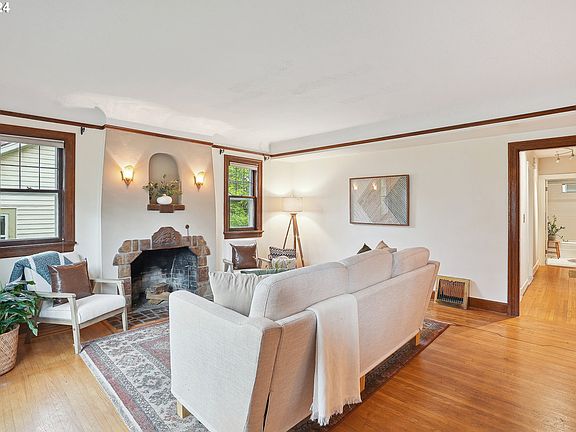 Welcome to this timeless gem nestled in the coveted North Tabor neighborhood. This English Tudor-style residence has original features abound, from the inlaid hardwood floors, coved ceilings, natural wood moldings, a stunning fireplace, and windows with iron inlays. You'll see the kitchen with upgraded amenities such as new fridge and stove in 2023 while still keeping original features. The primary bedroom is located on the main level, with 2 bedrooms and an office nook upstairs offering flexibility for your unique lifestyle. The basement features high ceilings, laundry and a bonus room perfect for an exercise or art room with added lighting and storage. Outside is a private oasis with a detailed landscaped yard, a large covered deck for outdoor entertaining and an attached garage. This friendly neighborhood has wide tree lined streets and easy access to the freeway, restaurants, and downtown. This is a must see! [Home Energy Score = 1. HES Report at https://rpt.greenbuildingregistry.com/hes/OR10227754]