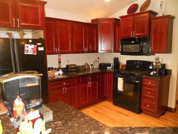 This is not a drive by! Many upgrades, bells, & whistles throughout! 4 BR/3BA, 3 Car. The master BR has a tray ceiling w/rope lighting. The master bath has a full size Jacuzzi tub, double sinks, & separate shower w/glass block window. The hall bath has rope lighting underneath sink. All baths have marble tops. Kitchen has black Whirlpool appliances, granite counters, island, rope lighting above cabinets, & a large pantry. The cabinets are Tuscany Cherry Burgundy wood. Stove & micro replaced 14'. Gorgeous wood floors in the kitchen & dining. The FR opens to kitchen & dining areas. The LL has a 4th BR & full bath, open rec. room & game room, & is finished as nice as the main level. Other features include 6 panel doors throughout, vaulted ceilings, numerous ceiling fans throughout, gas fireplace in LR, garage is 29' deep w/gas line hookup, 2nd laundry room, deck, patio, brick front, and a .25 acre lot. Possible quick poss.
