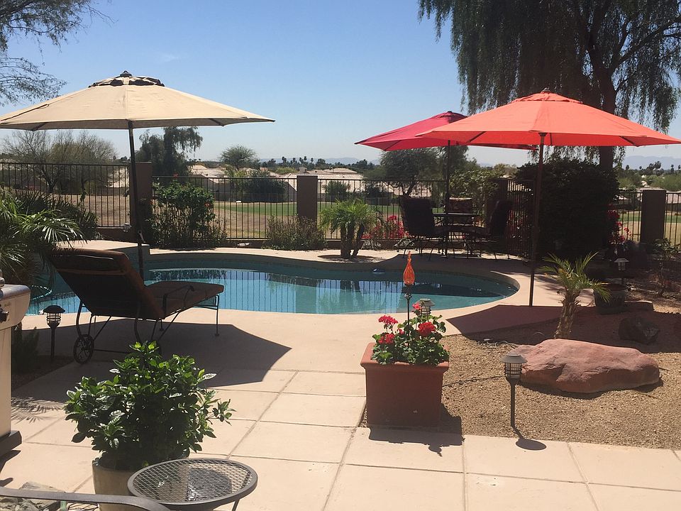 REMODELED! Golf Course Home w/VIEWS + Pool! Very desirable LOCATION!* Surrounded by Views of Desert Preserve Hills, Golf Course + Distant Mountain Ranges *This Stunning, Highly Upgraded + Immaculate home is a rare find! * Remodeled Kitchen w/ VIKING Appliances, Viking 36'' Gas Range w/Stainless Hood * 2nd Viking Wall Oven + Microwave * Viking Fridge + Bosch Dishwasher * Granite Counters + Tiled Backsplash * Gorgeous Wood Beam Ceilings in Dining Room, Office + Master Bdrm * Master Bath Remodeled w/ Freestanding Tub, NEW Shower + Custom Vanity * Main floors are 24'' Travertine Tile + Hardwood * Beautiful 2 sided Fireplace * Remodeled Swimming Pool w/ Sheer Waterfall + Linear Gas Flame * Surround Sound + Ceiling speakers throughout * 3 Car Epoxied Garage + RV Gate * '' MOVE IN READY ! '