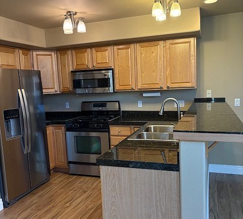 1 mile away from Boniface Gate. 2-car heated garage, large parking. Brand new washer and dryer. Brand new wood flooring and carpet. Downstairs living room with dining area, kitchen, 1/2 bath with outside deck in the back. Upstairs 3 bedrooms (master with walking closet) and 2 full bathrooms with office area. Owners pays for water and sewer. Owner pays for water and sewer.