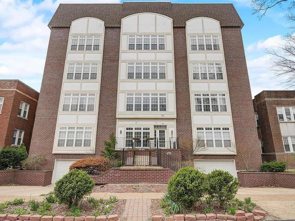 RARE opportunity for a U. City elevator condo, this 4th-floor end unit is certain to delight! Spacious and updated, with over 1,800 sqft this home is graced with natural light & beautiful views with an abundance of windows. An open floor plan with kitchen/dining/living room combo, gorgeous Brazilian cherry hardwood floors & gas fireplace. The updated kitchen includes 42" cabinets, granite counters, an updated backsplash, gas range, a breakfast bar, & large pantry. Exceptionally large primary bedroom suite with 2 walk-in closets, double sinks, separate jacuzzi tub & shower! 2 Additional bedrooms & a second full bath round out the living space. You have your own private deck off the primary bedroom, in-unit laundry room, 2 assigned garage spaces & private rear entry. Freshly updated with paint & new carpet. Just minutes from The Loop, Forest Park, Washington University, and CWE - One Year Premium home protection plan included for added peace of mind. Washer/Dryer/Refrigerator included. Location: City, End Unit, Upper Level