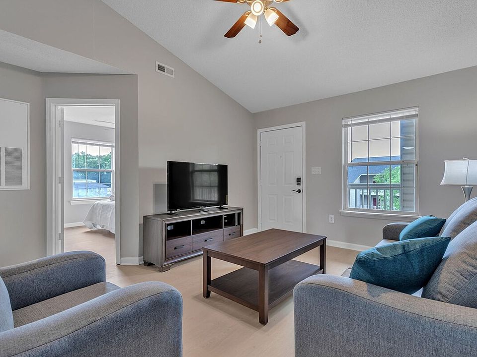 Skip the ordinary hotel and feel at home in this stylish 2-bedroom, 2-bathroom haven at Carlson Bay Luxury Apartments. Unwind in the spacious living area, perfect for relaxing after exploring Fayetteville, and whip up delicious meals in the fully equipped kitchen. Step into your private oasis and discover two inviting bedrooms, each featuring a plush queen-sized bed with nightstands and lamps for late-night reading. Get some work done or plan your Fayetteville adventures at the designated workspace complete with a desk and chair in each room. Ample storage is provided with a closet in each bedroom, ensuring a clutter-free stay. The kitchen is fully equipped with all the basic tools you need to prepare and enjoy your meals, whether you're starting your day with a quick breakfast or gathering for a dinner party. A starter supply of toiletries is provided, and a dishwasher makes cleaning up a breeze. Unwind in the comfortable living area, perfect for kicking back after a day of exploring Fayetteville. Gather around the coffee table for conversation or enjoy a movie night on the TV. The Carlson Bay complex offers a variety of amenities to enhance your stay, including a sparkling pool with an inviting sundeck, a state-of-the-art fitness center, a business center, a clubhouse for mingling with neighbors, and a playground and basketball court for fun for all ages. Pets are welcome with a limit of 2 pets per reservation, no aggressive breeds, and a weight limit of 50 lbs. A one-time non-refundable pet deposit of $250 is required. Mailbox access is available upon request with a refundable key deposit of $35. Westover is a large neighborhood about seven miles west of Downtown Fayetteville. The neighborhood is also located directly south of Fort Bragg, one of the nation's largest military bases, making it a great option for military employees and families. This suburban neighborhood has multiple schools, parks, restaurants, and shopping plazas. Westover is also home to Cross Creek Mall, the city's largest mall. Similar to many areas in North Carolina, Westover has a low cost of living and is known for its affordability. There are several apartments, houses, condos, and townhomes available for rent that will fit a variety of budgets. There are even some residences that have nice views of Westover's lakes. Although Westover is laden with amenities, residents appreciate having access to Interstate 295, Route 401, and All-American Freeway to reach other locales. The main occupant must be listed on the reservation, and the reservation must reflect the accurate number of guests and pets. Respect shared spaces and amenities, keep noise levels low during late hours, and dispose of garbage and recycling properly in designated areas. Annual preventive maintenance checks for smoke detectors and HVAC filters may be scheduled, and you will be notified in advance if access is needed. In case of emergency maintenance, if urgent repairs are required and we cannot reach you within a specified time, we reserve the right to enter the unit. Includes a designated workspace complete with a desk and chair in each room, allowing you to get some work done or plan your Fayetteville adventures.