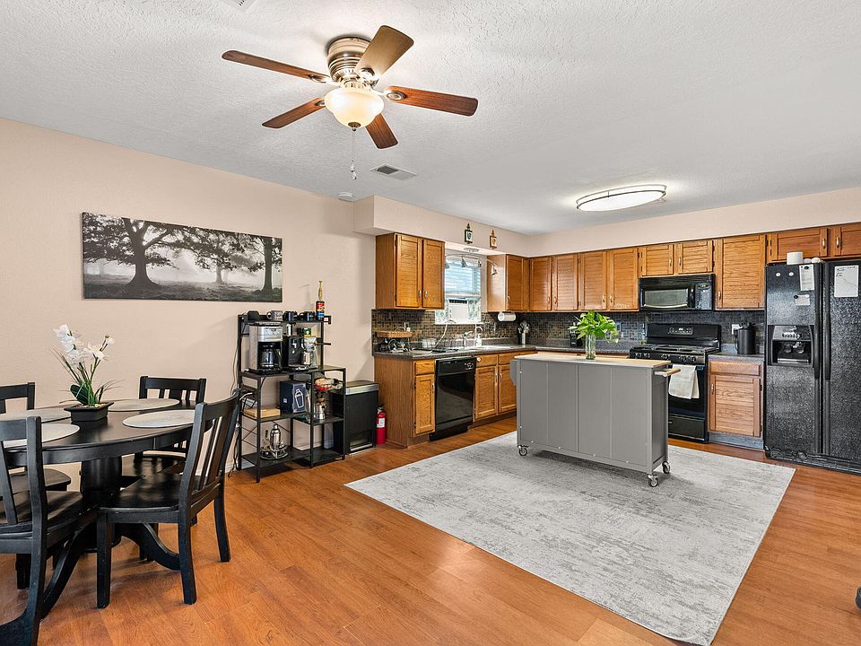 Home is being sold ''as is''. Schedule Your Personal Showing Now!! Tucked away on a quiet street, this well-cared-for home offers a comfortable and inviting layout with thoughtful updates throughout. Short distance to the coveted Trailhead Park and river access. The spacious living area features a stunning custom stone fireplace with wood-burning warmth--perfect for cozy evenings at home. The kitchen is functional and bright, complete with a pantry and a generously sized dining area ideal for casual meals or entertaining. You'll find three spacious bedrooms, a large utility room, and the peace of mind that comes with no carpet and no polybutylene plumbing, and backyard access.